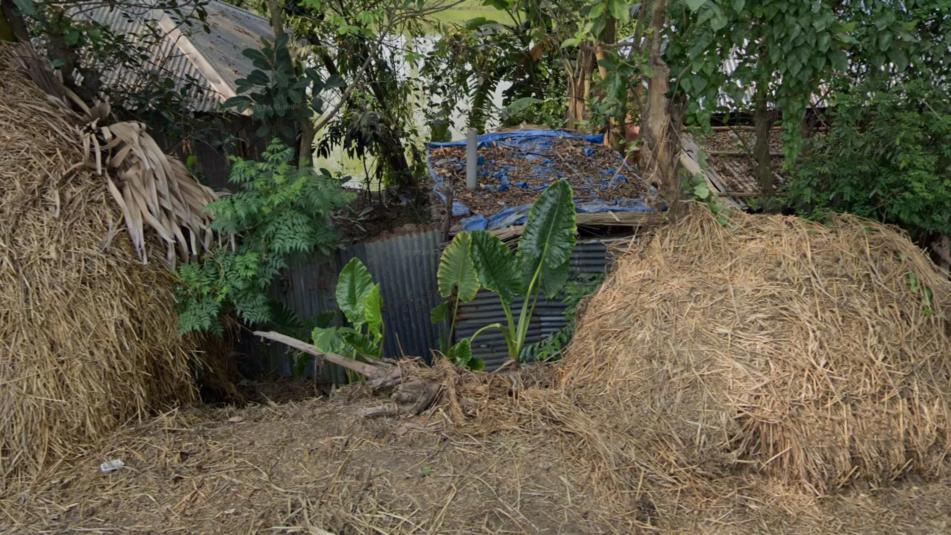These straw and clay structures with vents and metal flues are used for curing tobacco leaves and are commonly found in the tobacco growing areas of northern Khulna Division. Tobacco leaves can often be seen hanging on racks nearby.