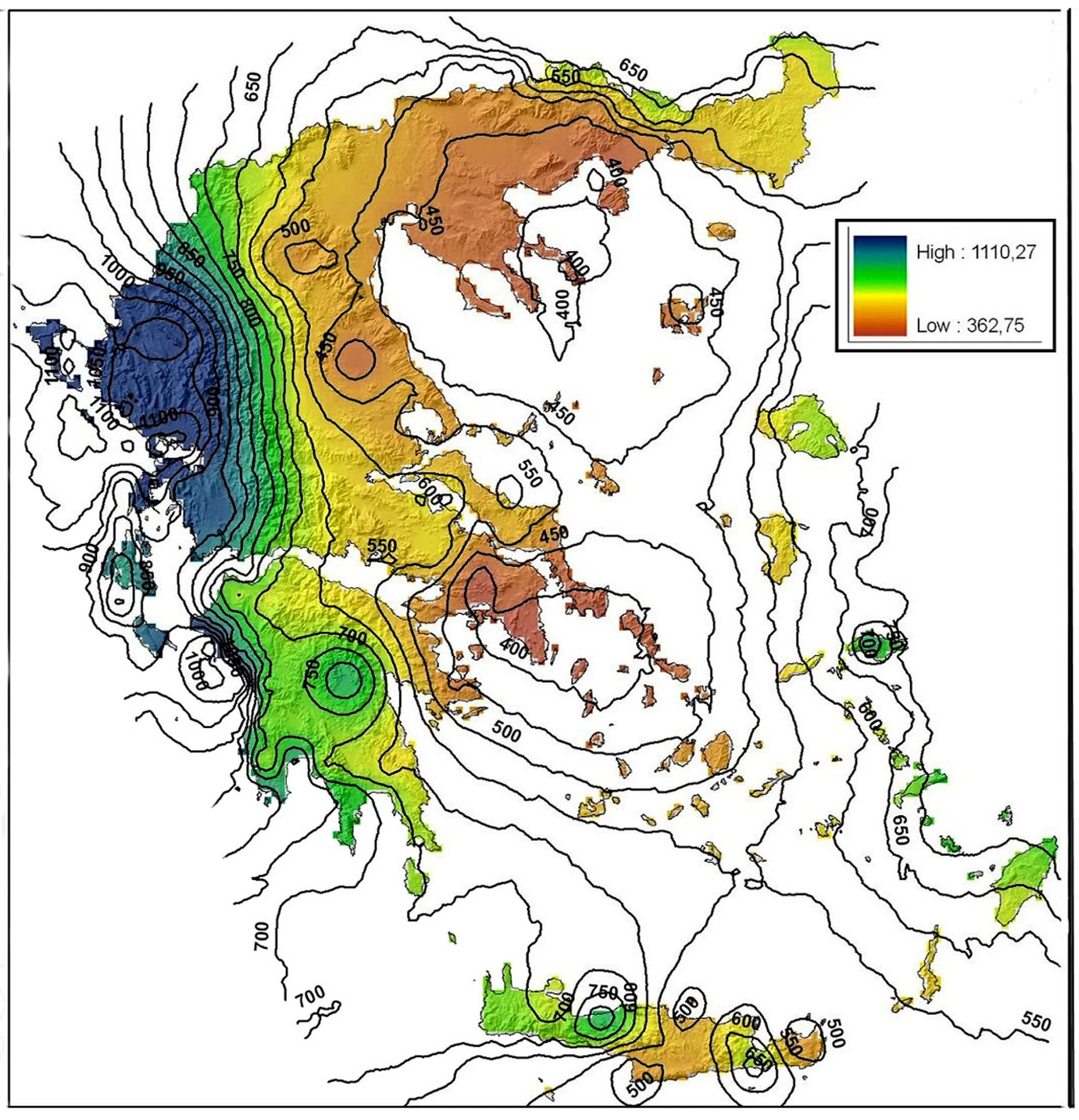 Greece is famously quite a dry country, but there are more lush parts that can be seen on this rainfall map. The difference between 700mm and 400mm on some islands can also be the difference between the presence or absence of trees, so it is also well worth studying this rainfall map in some detail.