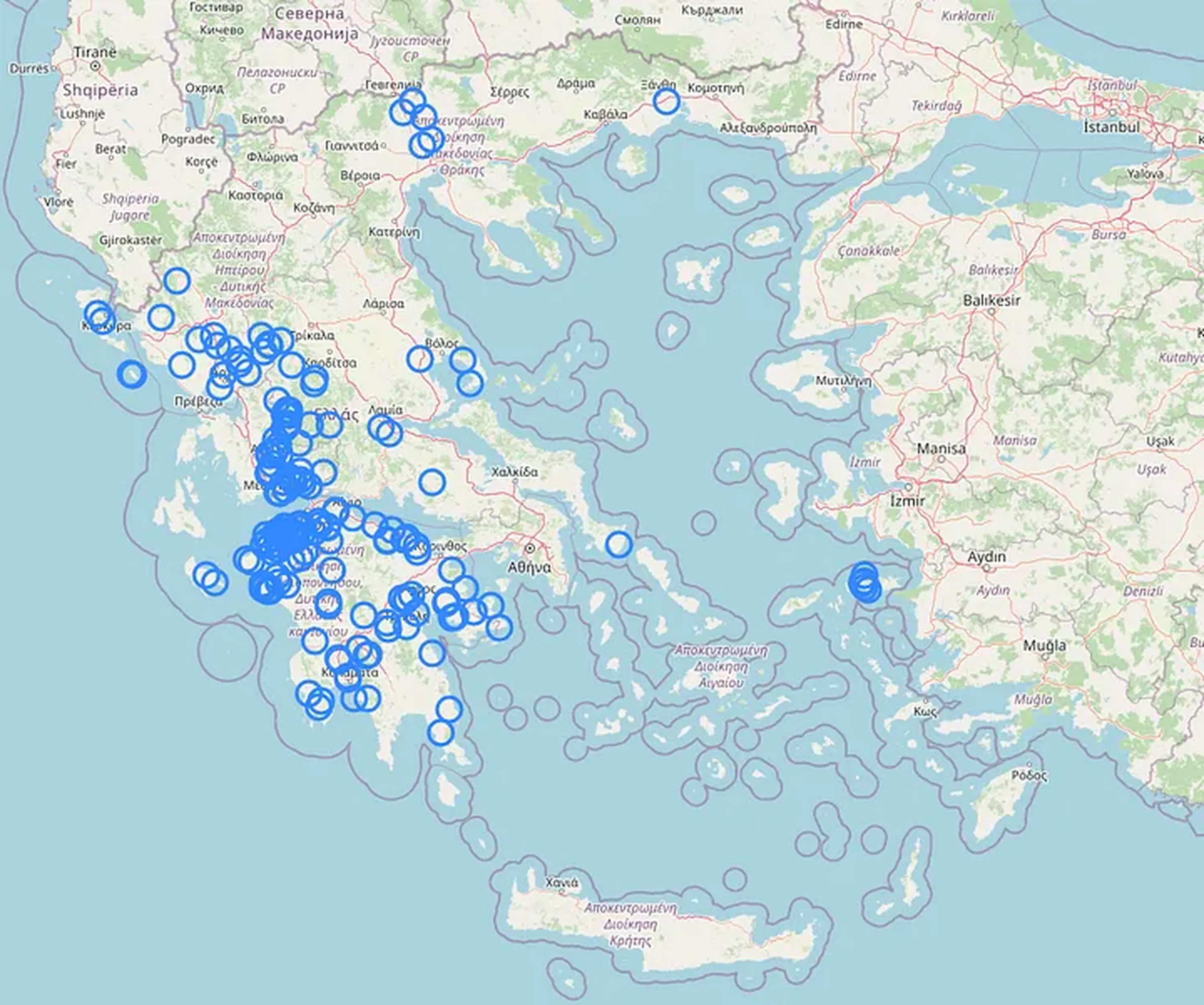 Note that the municipality system was simplified in 2011, which is when the earliest Greek coverage was taken, so in older coverage you may find names of defunct municipalities. You can find an up-to-date map of ‘dimoi’ here.